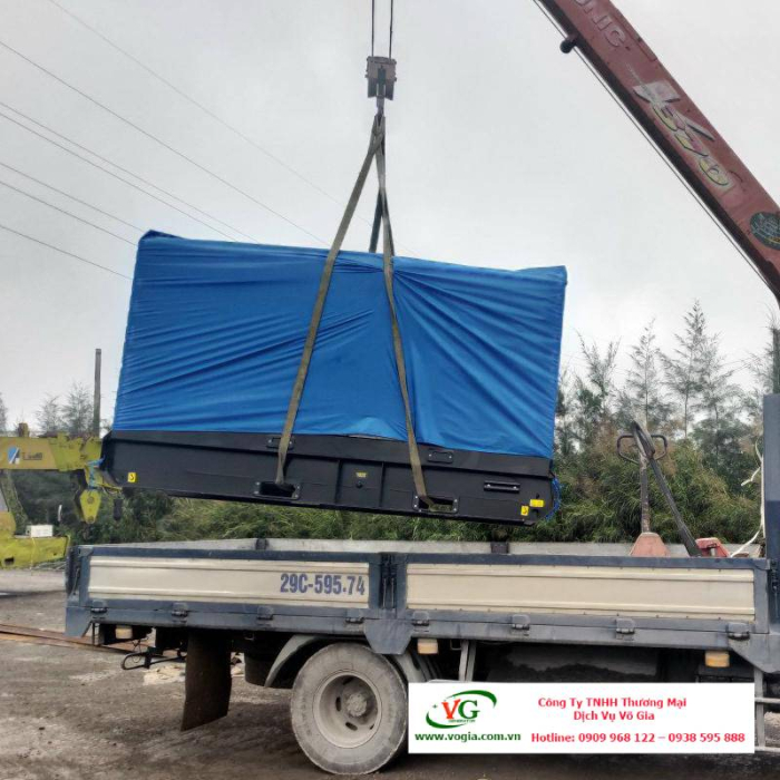 Khung máy được thiết kế với hai lỗ phía dưới để sử dụng xe nâng và hai móc treo phía trên để cẩu, giúp dễ dàng vận chuyển và lắp đặt.